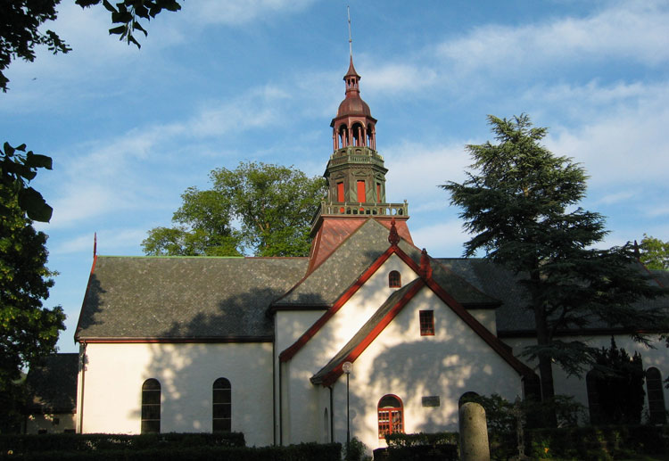 Steinkirke fra middelalderen, delvis ombygd etter brann i 1904. Den nye kirken ble bygget opp i gammel stil, med rike treutskjæringer. Restaurert i 1632,1868,1907.